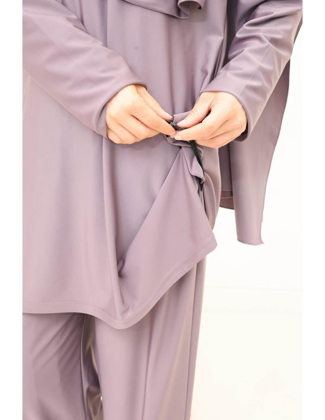 بنطال واسع بنفس اللون والخامة، مريح وعملي للحركة